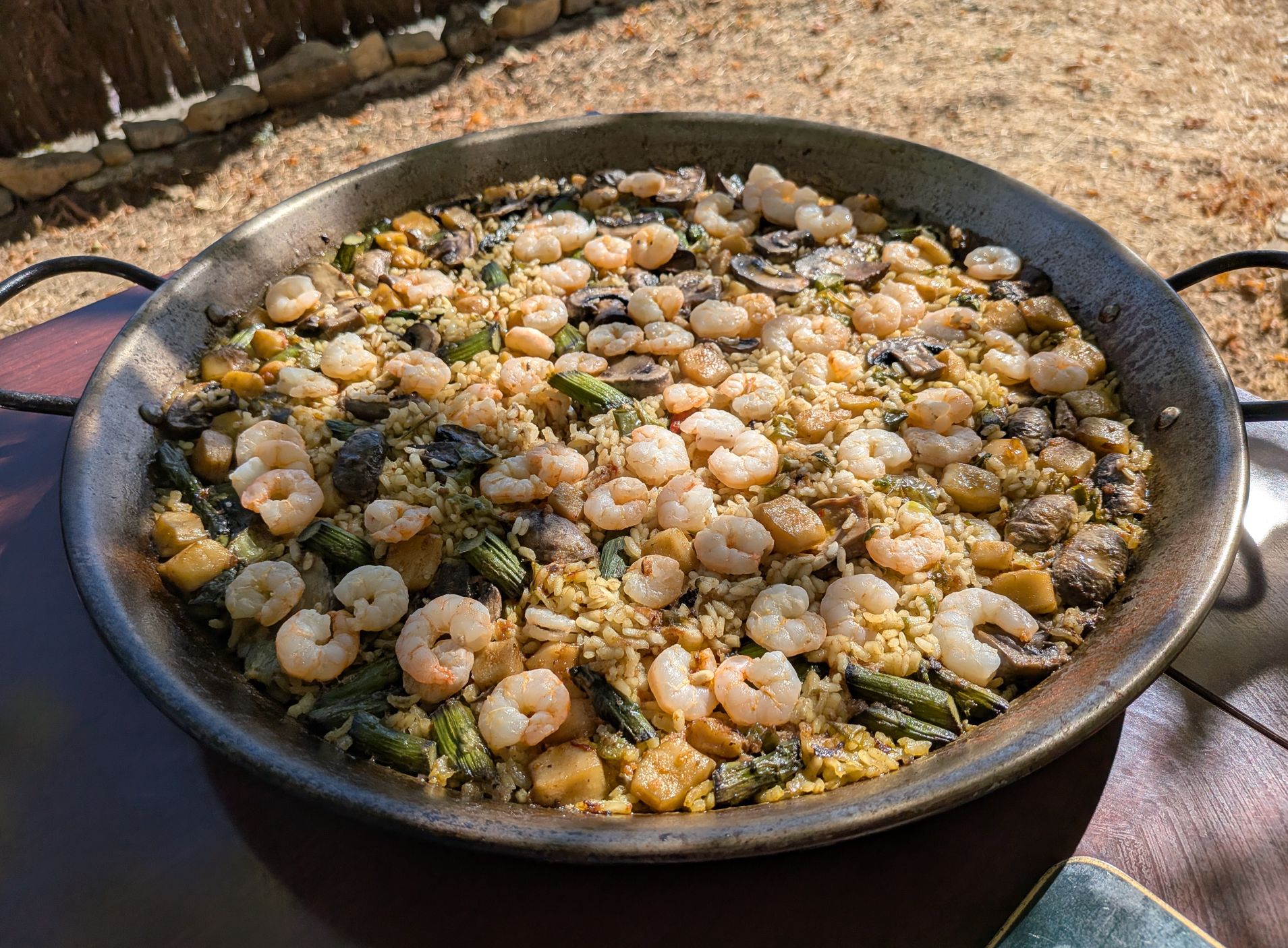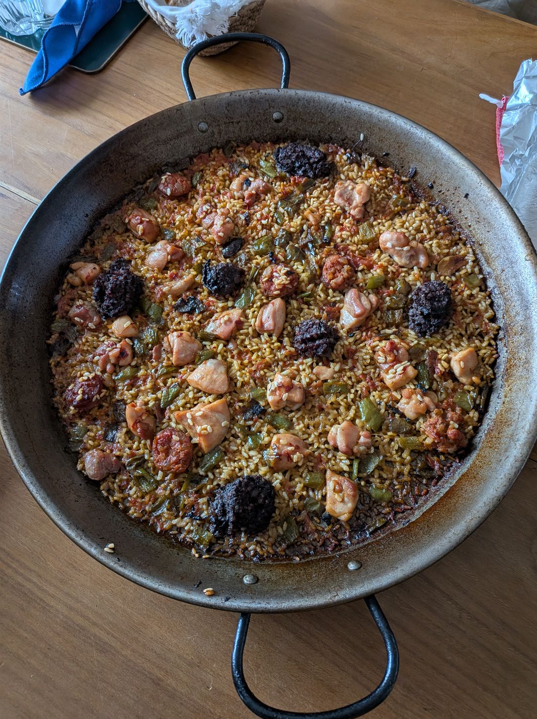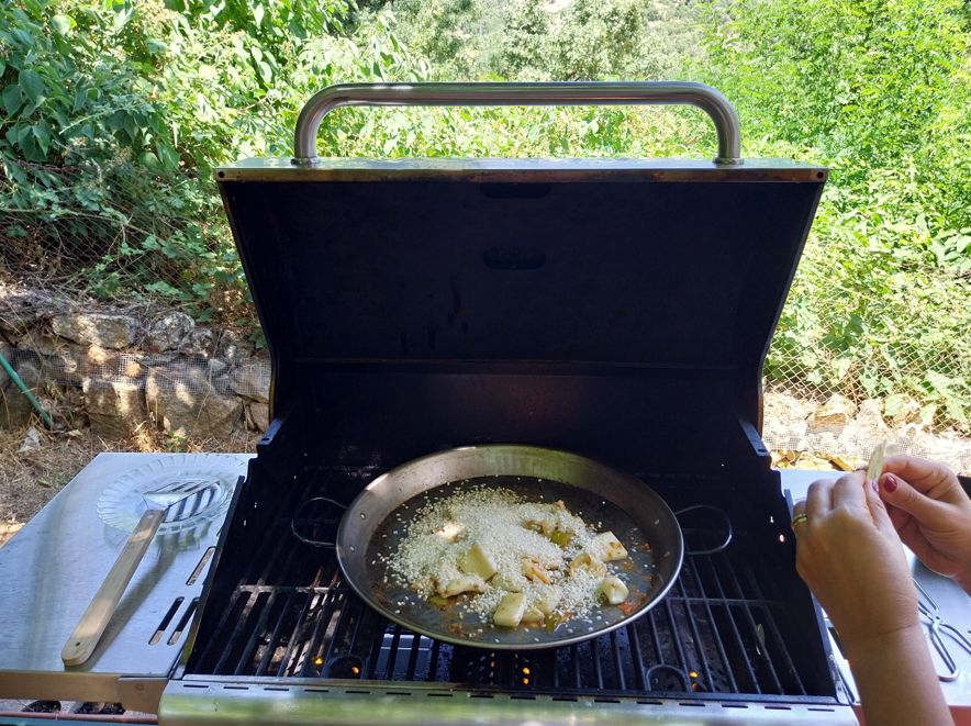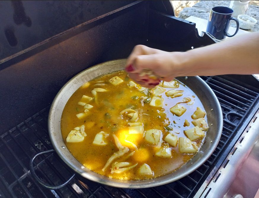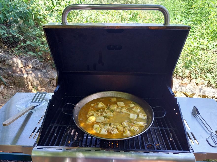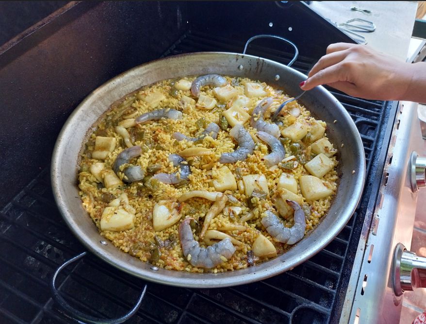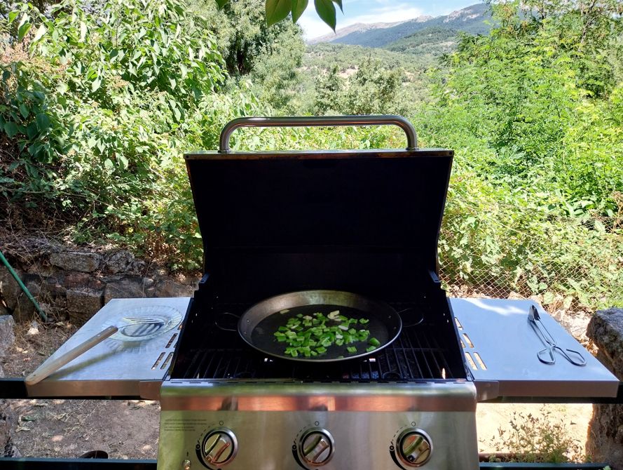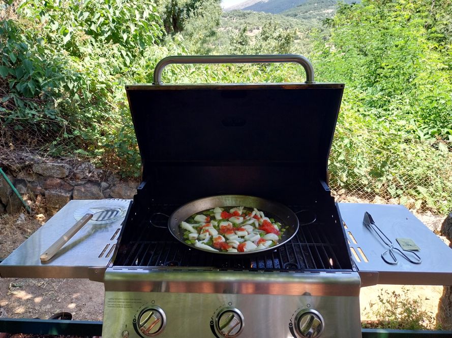 This is really for what we would consider in the USA as a “paella” done on the BBQ, but here in Spain it is just considered a rice dish because it does not meet the strict requirements to be a “paella”. What are those strict requirements? Well I guess that would depend on which spaniard you are asking, so to avoid any problems I just will call this BBQ Rice.