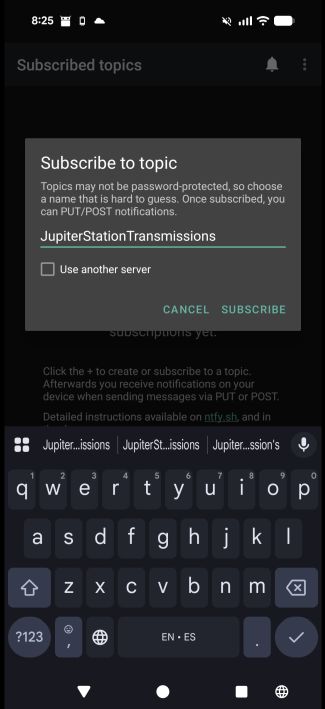 andrew@Taygete:~$ curl -d "Test1" ntfy.sh/JupiterStationTransmissions