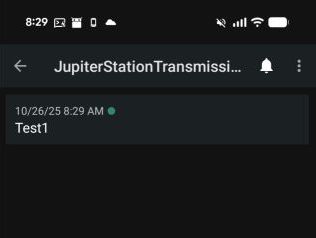 {"id":"tO91Vjrpumdt","time":1761463748,"expires":1761506948,"event":"message","topic":"JupiterStationTransmissions","message":"Test1"}