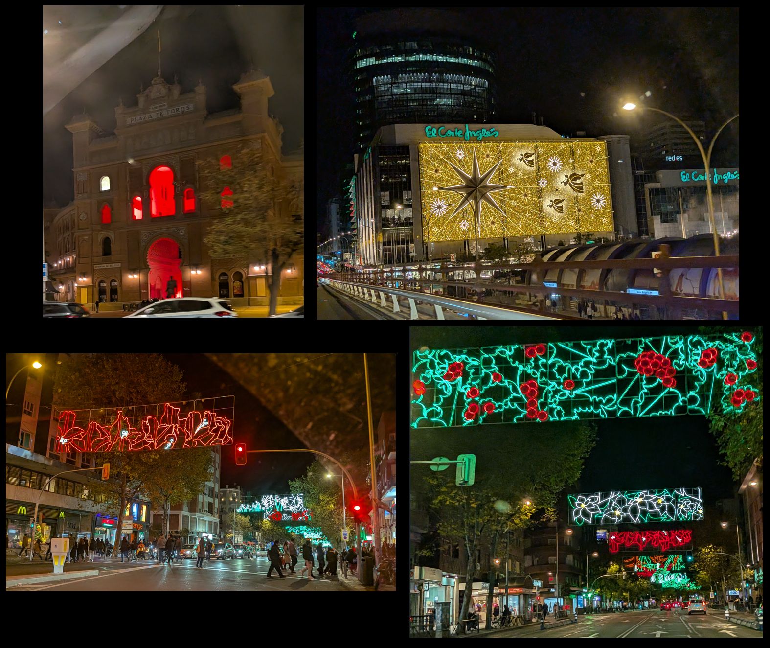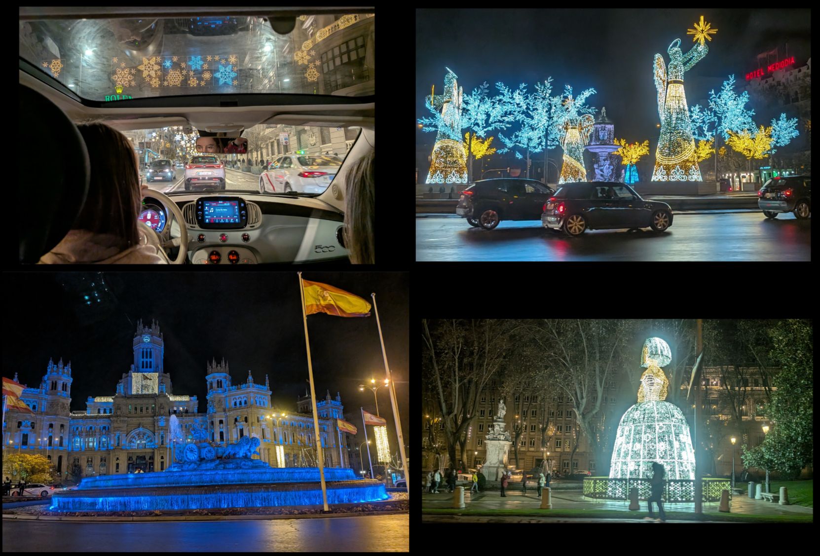 We normally celebrate Thanksgiving the Saturday after the real Thursday date, alternating houses between 3 families. This year the host convened the celebration for the Saturday before (November 22nd) which meant that we got a full week extra to start the silly season! We took full advantage and saw our first batch of city christmas lights on our way from our Thanksgiving feast (by serendipitous coincidence Madrid also decided to light them earlier than normal this year as well):