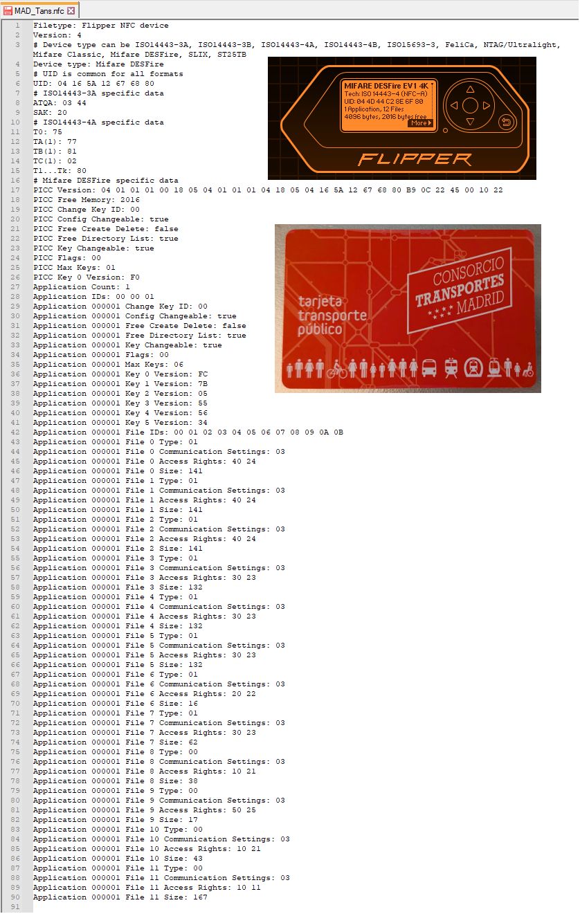 The actual data in the files is not readable (or writeable) without the proper keys: “DESFire is used for high-security applications like metro systems - even with complete knowledge of the file structure, you can’t access or modify the actual data without the secret cryptographic keys held by the transit authority”. Good to know that it is not possible to swindle the amazing Madrid public transit system!