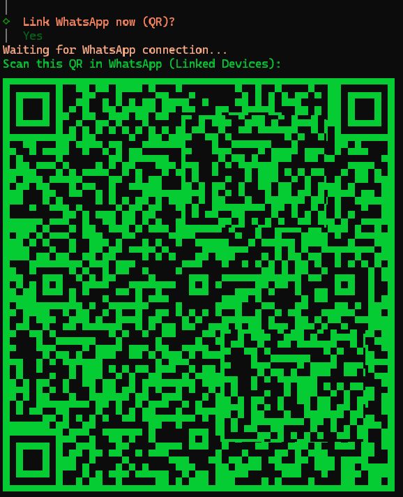 It then guided me through setting up a channel to communicate with it. I choose WhatsApp as I have it and use it, and because the programmer mentioned that was the first way he implimented to interact with it and how he uses it. Was very easy and even generate a QR code in a terminal session to link my account: