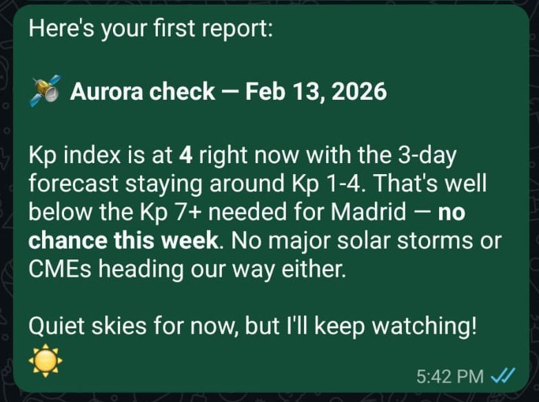 The first thing I asked of it via WhatsApp, StationDomo had no problem performing even though the prompt had some errors that were introduced via the voice to text transcribing: