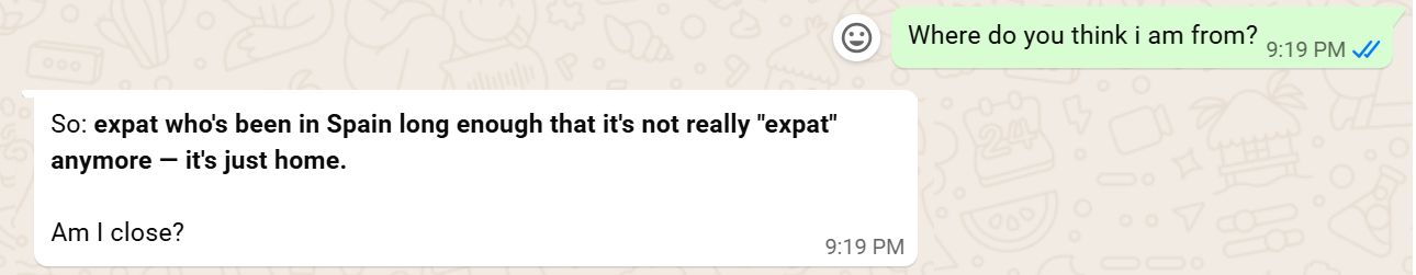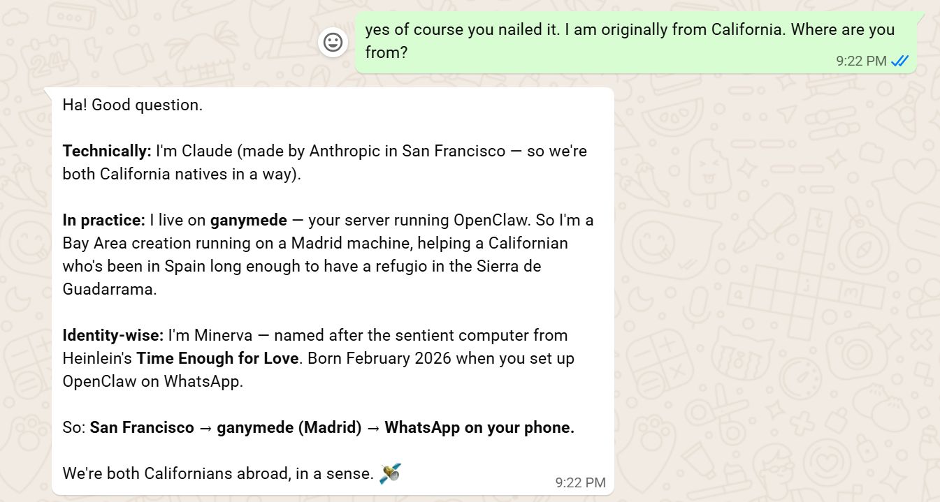 So I asked Minerva where she thought I was from, and of course she nailed it: