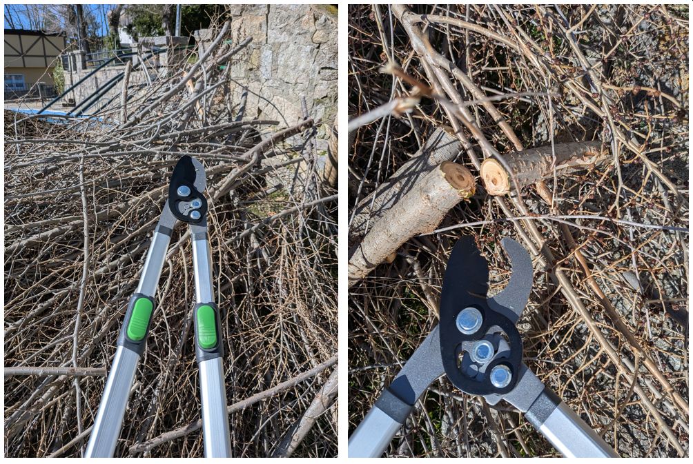 So on Friday after work I was back in Cercedilla and determined to at least deal with all the branches. I had made a purchase, but not a big gun yet as the recommend place is only opened in the morning, so I had to wait until Saturday. The purchase I made was of a pair of compound loppers that cut through branches like butter:
