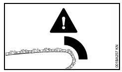 the plane of the bar and can cause severe or fatal injury to the operator contacts a solid object or is pinched. - Pull-in: Pull-in occurs when the saw chain on the bottom of the bar is suddenly stopped